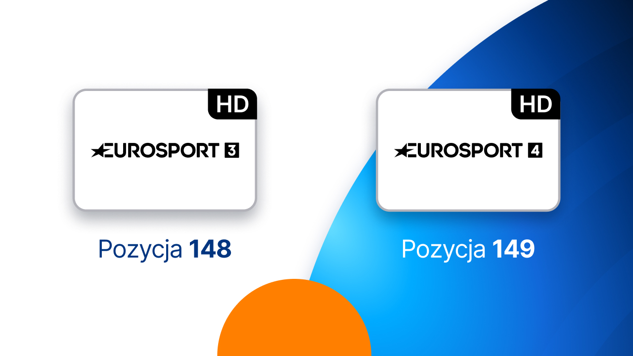 Niezmiernie miło nam Państwa poinformować, iż od 1 kwietnia 2026 roku do naszej oferty cyfrowej na stałe dołączają nowe kanały sportowe - Eurosport 3 i Eurosport 4. Dostępne są w jakości HD dla Abonentów pakietu Rubinowego i Brylantowego, odpowiednio na pozycji 148 i 149 dekodera. Kanał Eurosport 3 jest już znany naszym Abonentom, gdyż od listopada 2025 roku dostępny był promocyjnie dla Abonentów pakietu Rubinowego i Brylantowego